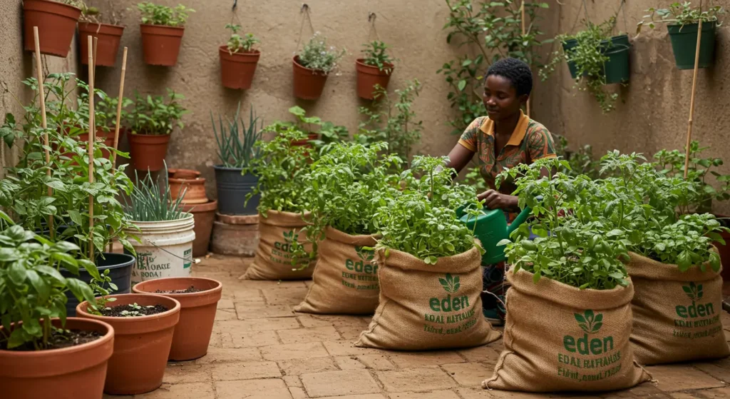 Pots, grow bags and recycled containers work well for tomatoes, chillies, onions and herbs. Use good potting mix, ensure drainage holes and pick varieties suited to containers (dwarf tomatoes, bush peppers). Sack gardens; vertical stacks made from jute or poly sacks are hugely popular in Kenyan urban contexts because they’re cheap and space‑efficient.